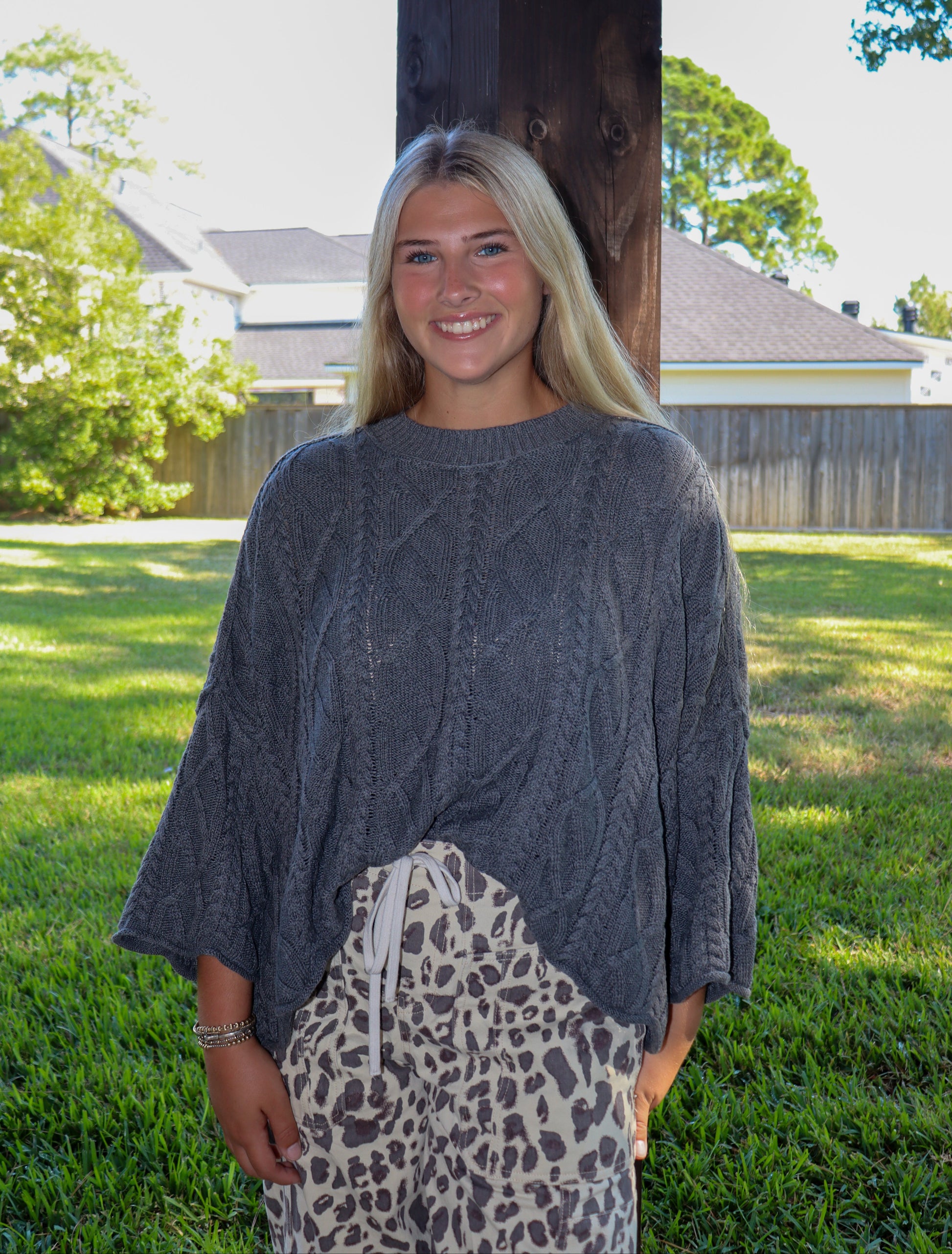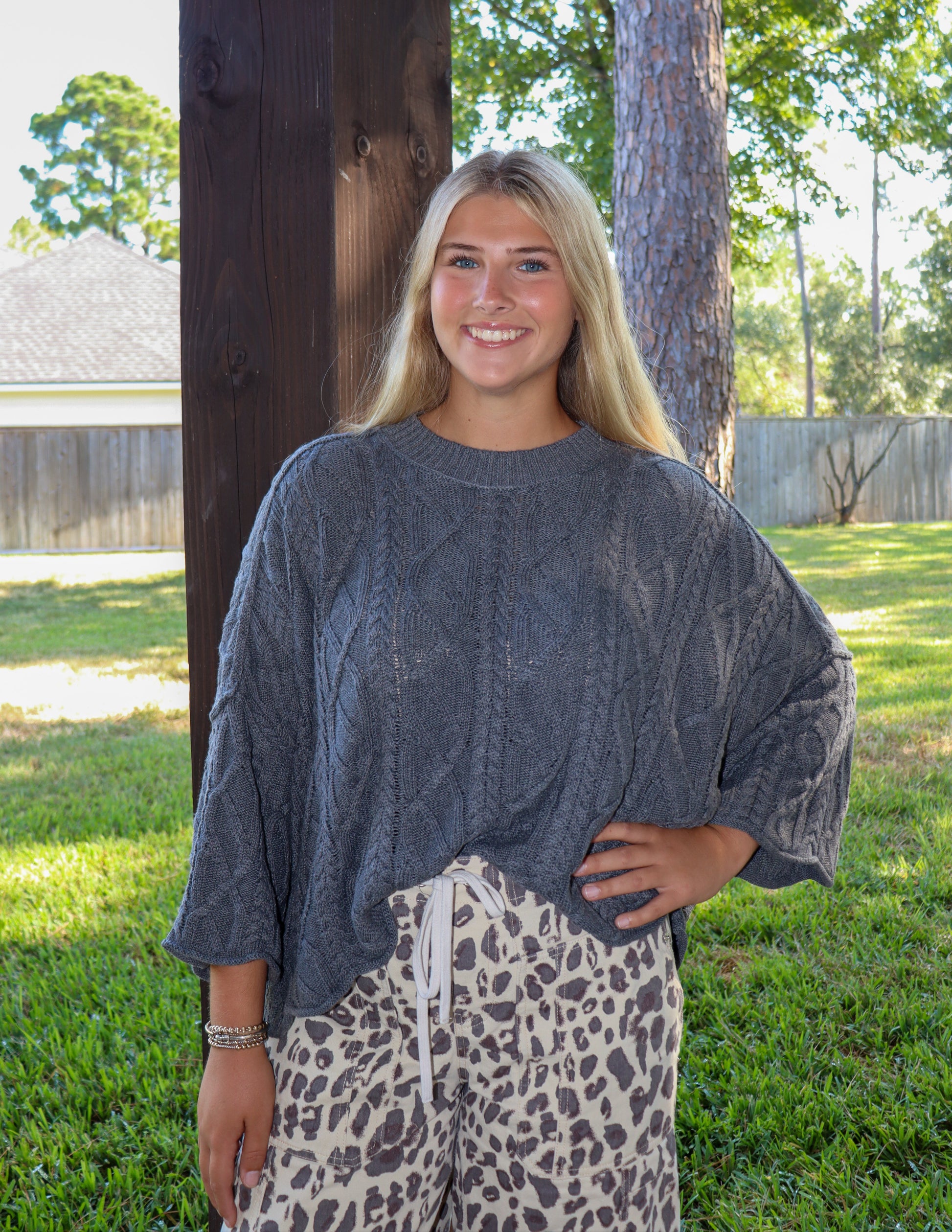 Super comfy and flowy! Scalloped edge detail. Model is wearing size S/M.