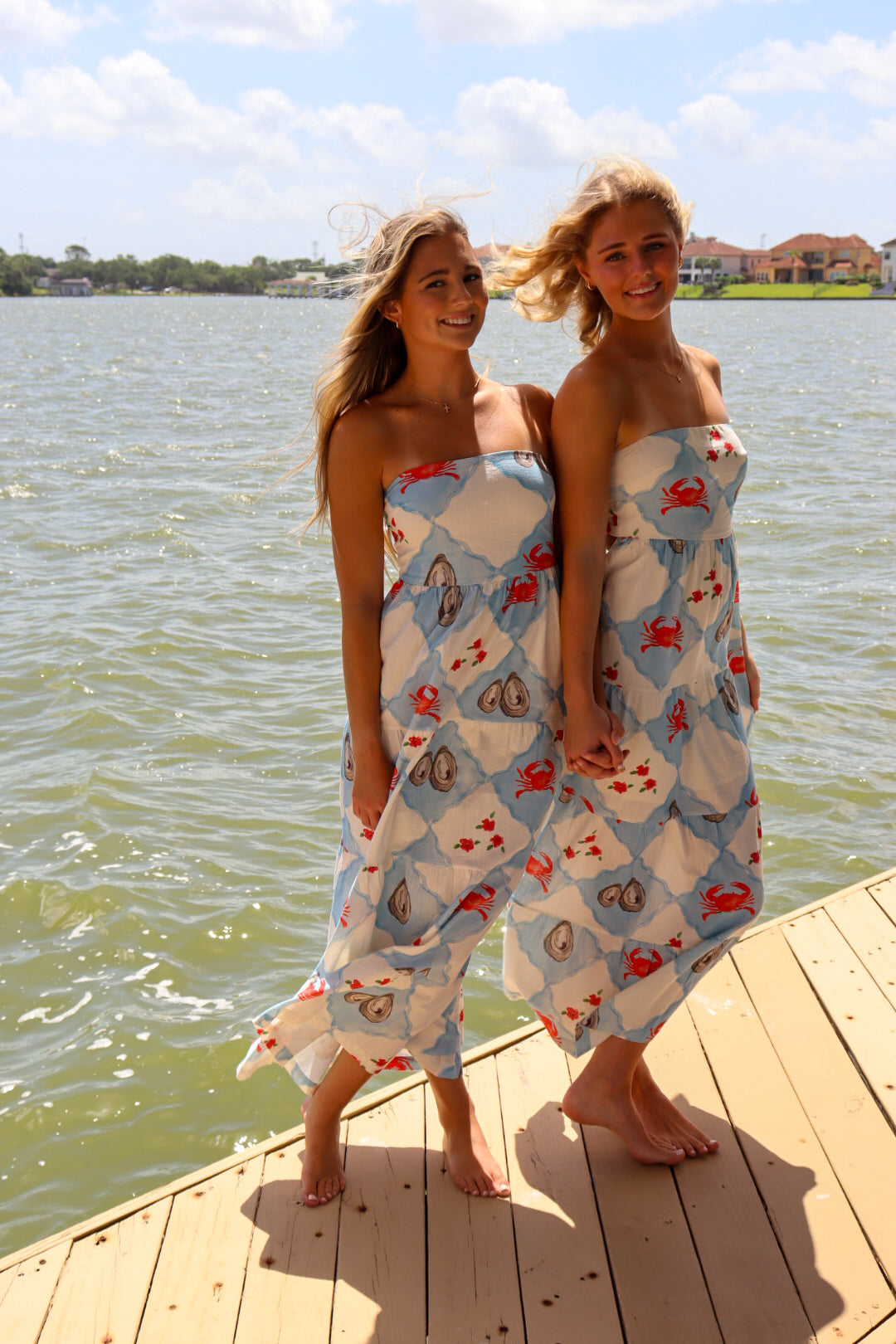 Our favorite dress ever!! Silicone lining to hold the top up also adjustable bow to tie as tightly as needed. Great length, not completely to the floor. Models are wearing size xs and small.