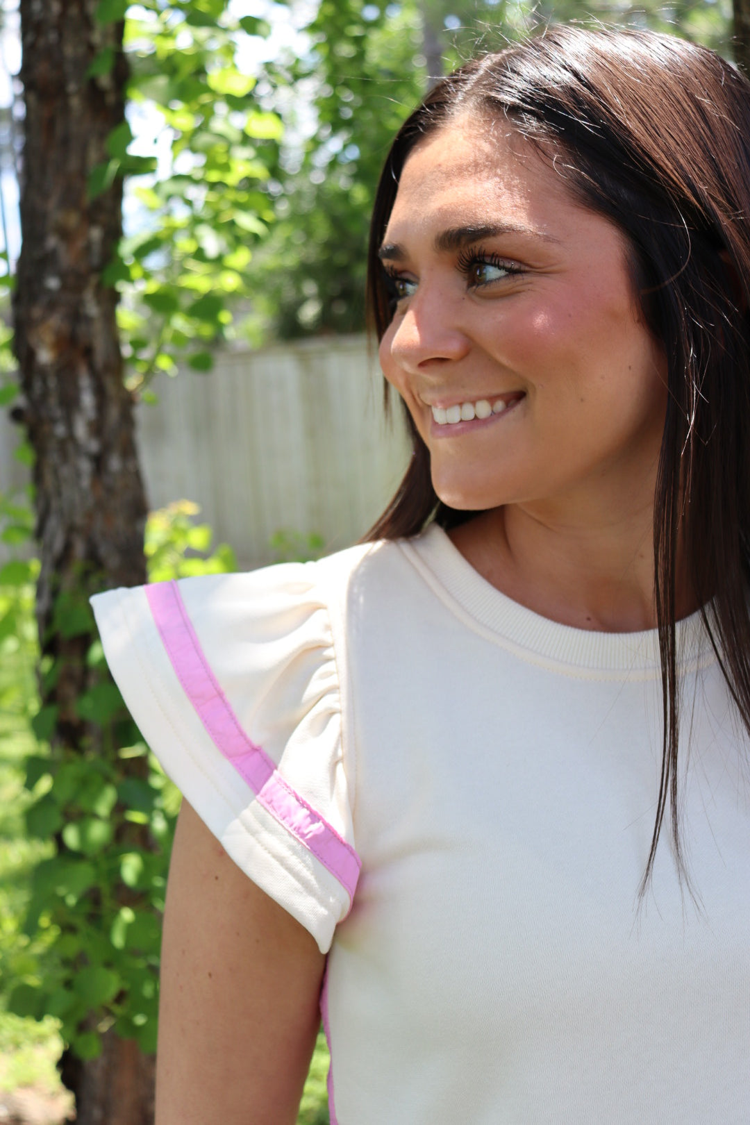 The cutest pastel pink and cream set. The cutest details ever. Model is wearing a small.